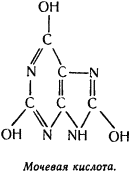 Мочевая кислота – производное пурина, имеющего огромное значение в жизни животных. Он входит в состав нуклеиновых кислот – вещества наследственности и аденозинтрифосфата – переносчика энергии. К пуринам же относятся возбудители нервной системы и сердца: кофеин, теобромин, теофиллин, содержащиеся в кофе, чае и какао. Строение их молекул очень похоже на строение мочевой кислоты.