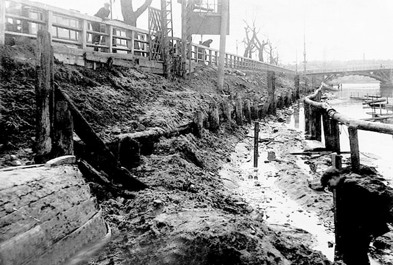 Строительство гранитной набережной. Фото 1950-х годов