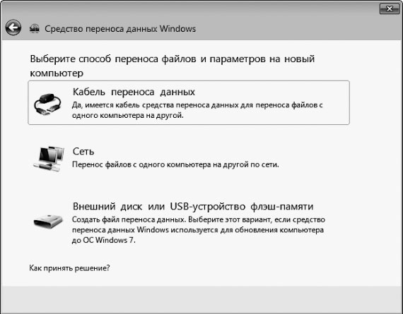 3. Найдите и запустите файл migsetup.ехе. Дождитесь появления специального окна переноса файлов и параметров. Нажмите кнопку Next (Далее) и выберите подходящий способ переноса (рис. 1.8).