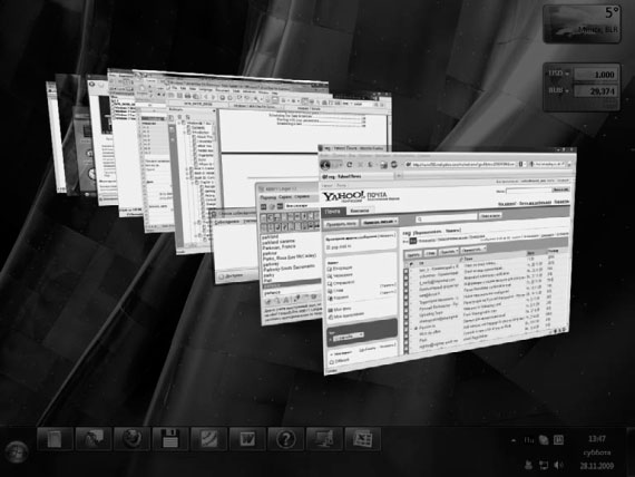 В Windows 7 также сохранился эффект эргономичного пролистывания. Он обеспечивает удобное переключение между большим количеством открытых окон и позволяет быстро сориентироваться в крупных эскизах. Это намного приятнее, чем терять время в поисках нужной кнопки на панели инструментов.