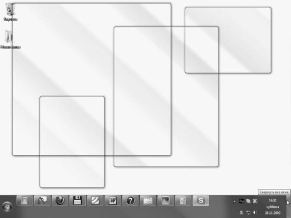 Рис. 2.8. Aero-взгляд после подведения указателя мыши к кнопке Свернуть все окна