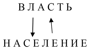 Вместе с тем, на текущий момент мы имеем гипертрофированную прямую связь, отражающую полную зависимость населения от власти, и слабую обратную связь: