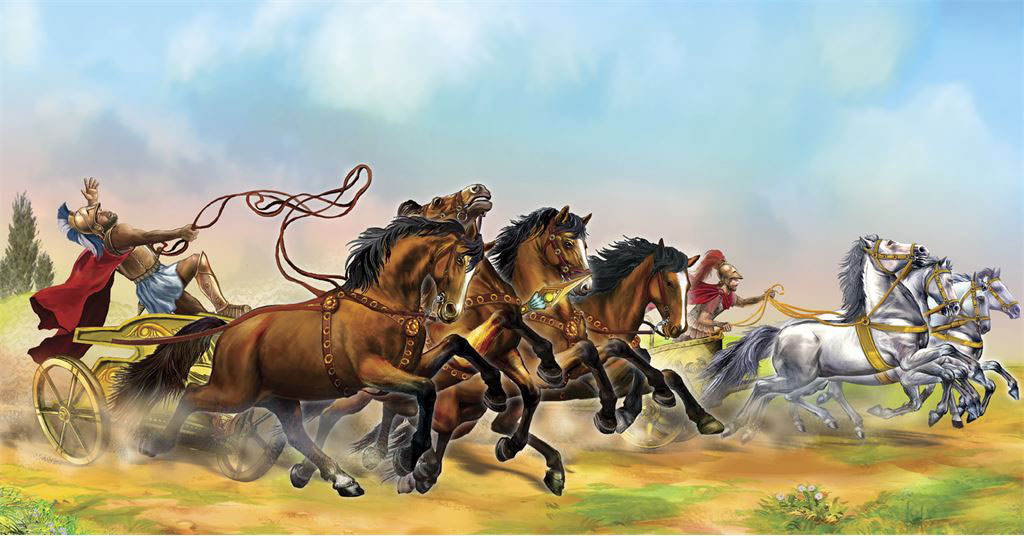 Традиция собираться на соревнования в Олимпии зародилась очень давно. Одна из легенд связывает начало игр с именами царя Эномая и его дочери Гипподамии. Она была красавицей, и к ней часто сватались знатные женихи. Однако боги предсказали Эномаю: если его дочь выйдет замуж, он погибнет. Напрямую женихам дочери Эномай не отказывал. Он предлагал им устроить состязание в скачках на колесницах: кто его обгонит – тот и будет достоин стать мужем Гипподамии. Коней же Эномая никто не мог обогнать; они были подарены царю самим богом войны Аресом. Эномай был так уверен в своей победе, что даже стартовал не сразу – давал очередному жениху фору. Затем он догонял несчастного претендента и пронзал его копьем. Так продолжалось до тех пор, пока к Гипподамии не посватался хитроумный Пелопс. Он подкупил возничего царя, и тот заменил чеку в его колесе на восковой стержень. Во время гонки стержень начал таять, колесо соскочило с оси, Эномай упал под копыта лошадей и погиб. Пелопс женился на Гипподамии и стал новым царем Элиды. Его именем был назван остров Пелопоннес. Многие греки считали, что с этого состязания Пелопса с Эномаем и начались соревнования в Олимпии.