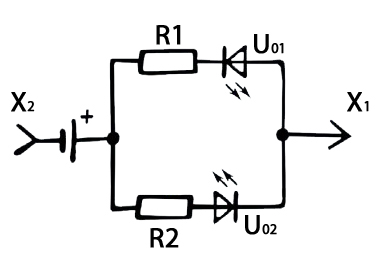 – в качестве контактов: Х1 – швейная игла и т.п.; Х2 – зажим типа «крокодил» (провод оптимально длиной 70–80 см);