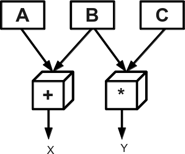 Параллелизм – параллельное выполнение машинных команд разными устройствами. Например, команды x=a+b и y=b*c, где a, b и с – регистры, процессор может выполнить независимо, если он имеет раздельные устройства сложения и умножения (см. рис. 1). Этот принцип воплощён в большинстве современных процессоров.