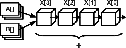 Конвейеризация – разделение команд на этапы, каждый из которых выполняется быстро отдельным элементом аппаратуры, и выполнение этих этапов происходит по принципу конвейера: друг за другом. Таким образом, одновременно может выполняться несколько команд на разных стадиях конвейера. Наиболее часто этот принцип используется в векторизации – выполнении однотипной операции над векторами, т. е. массивами данных, расположенными в памяти регулярно (см. рис. 2).