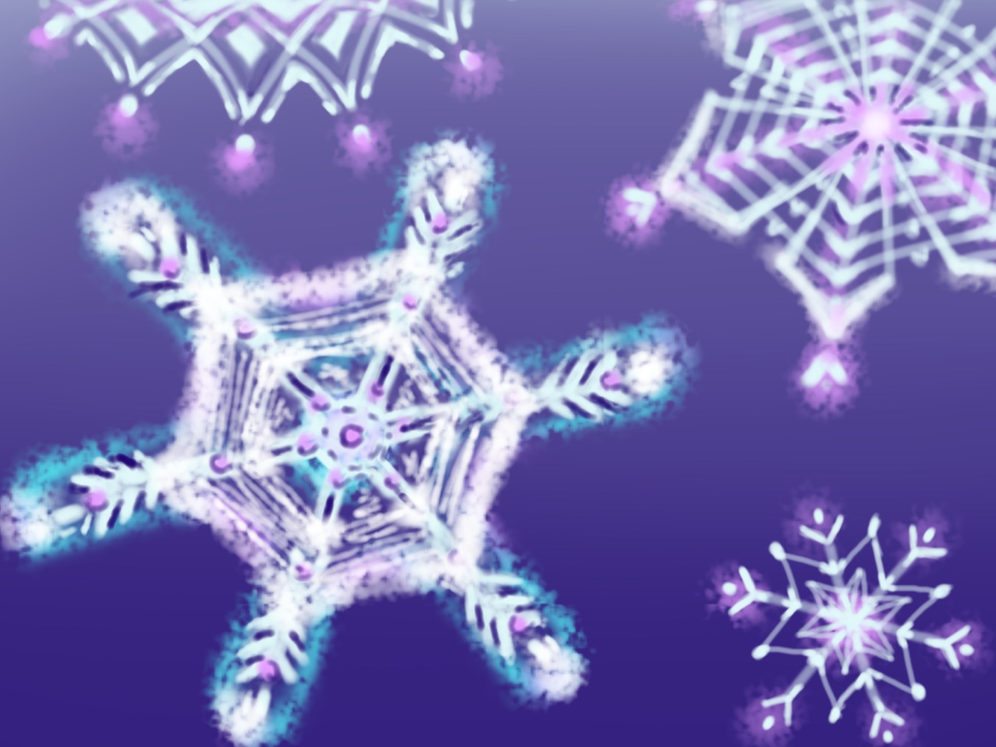 Мне также захотелось поучаствовать. Включили самый простой режим хлопков. Думая, навёл прибор на поверхность, – хлопок, но по факту это просто как мерцание индикаторной лампочки и снежинка играет всеми цветами радуги. Преобладают фиолетовый, синий, голубой, белый, зелёный. Все остались довольны, и я, и художники: