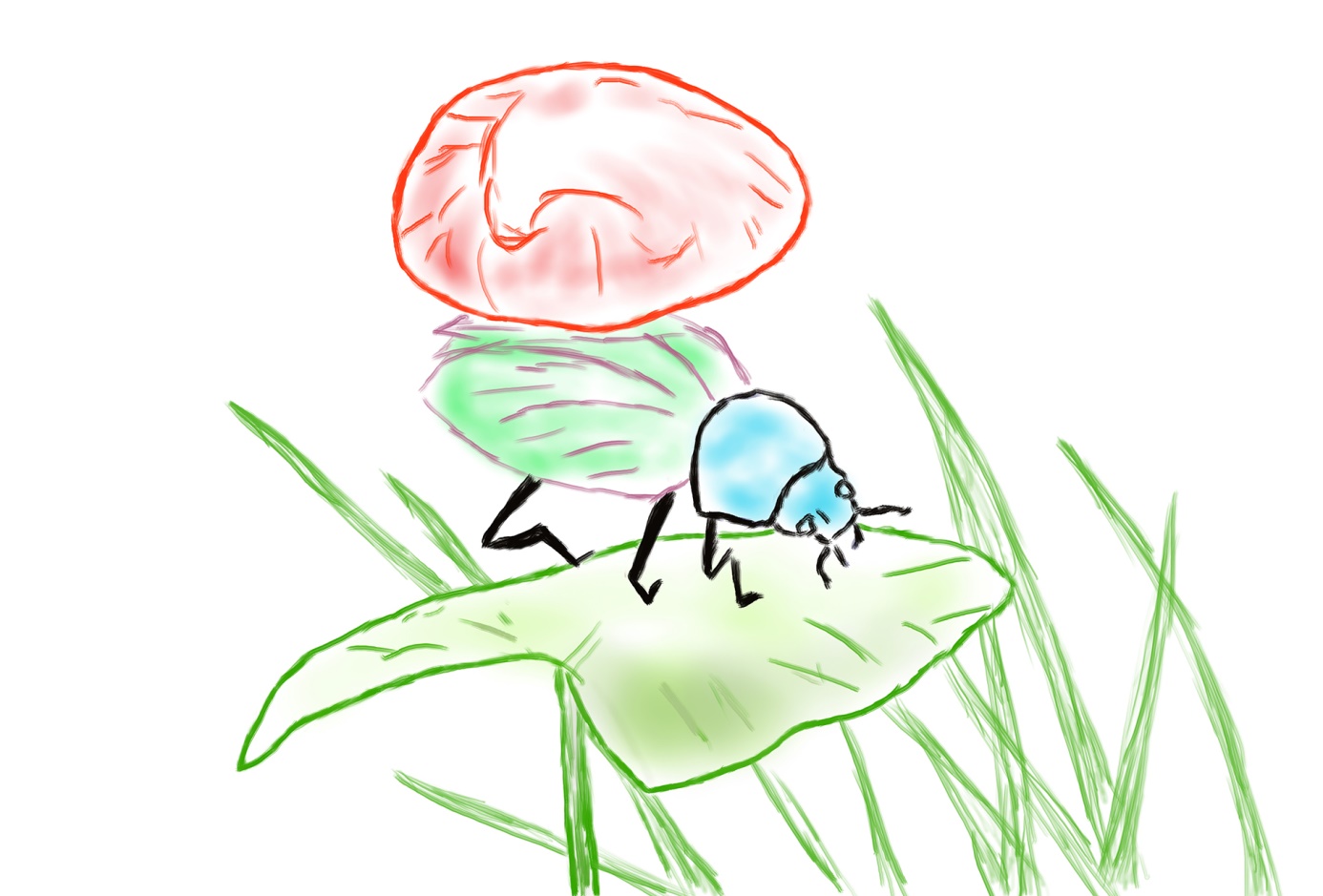 Мир насекомых. Рассматриваю существо-насекомое с красным круглым колпаком сверху, как у божьей коровки, только без чёрных точек. Вместо привычных для наших насекомых крыльев у этого поднялся панцирь, как на воздушной подушке, и оно со звуком повисло в воздухе.