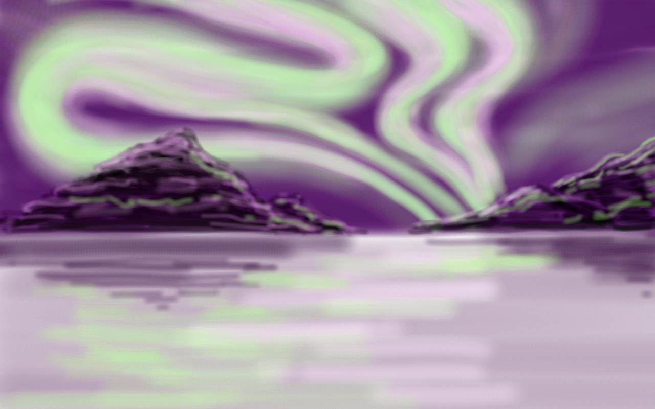 Осматриваюсь вокруг. Совершенно другие законы материи. Местами проявляется свечение, напоминающее северное сияние. Это живые объекты размерами сверхпланетарного уровня. Один из них принимает форму в виде фиолетово-бело-зелёной снежинки. Сворачивается и разворачивается. Проявляется и исчезает из сияния, так же как и другие тонкоматериальные объекты сверпланетарных размеров.