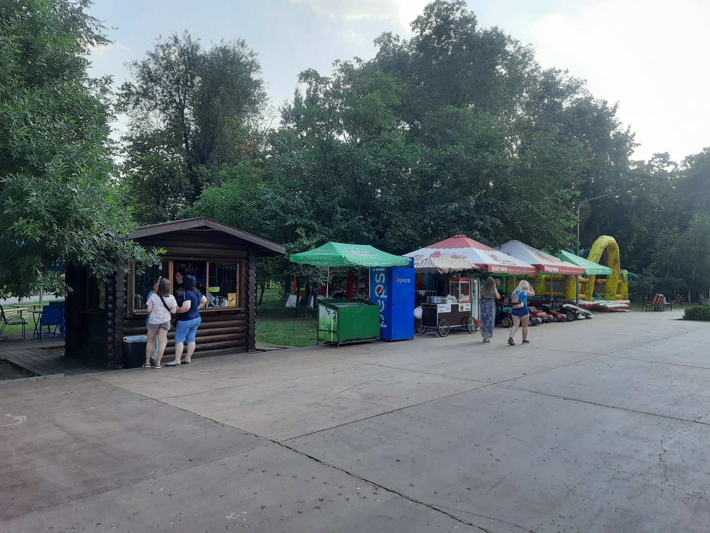 На центральной аллее есть кафе, прокат детских электромобилей.
