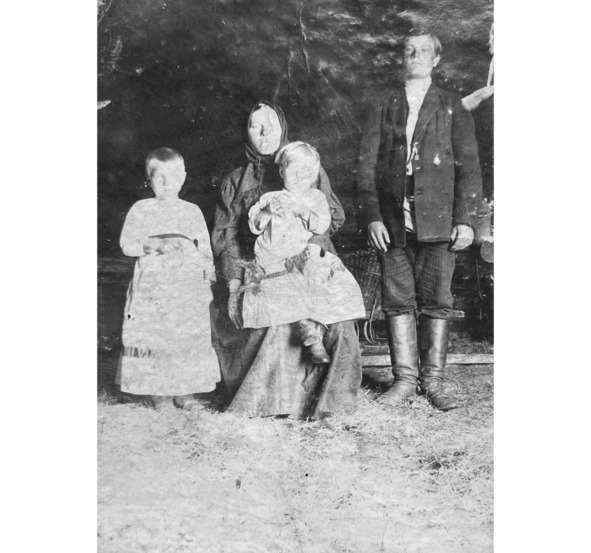 Думаю, вспоминая Молоково, уместно вернуться к фотографии предшествующих лет. Это самое раннее изображение – Николаю лет 14 или 16. Он стоит – в пиджаке поверх косоворотки, подпоясанной широким ремнем, в высоких сапогах. Из петлицы пиджака во внутренний карман тянется цепочка – часы! Это говорит о многом: и об определенном достатке и – главное – о статусе взрослого! На стуле сидит бабушка Анна с Глафирой на руках и рядом стоящей Марией. Одежда детей украшена атласными лентами. На бабушке Анне («бабушкой» ее тут не следовало бы называть: в эти годы ей было 34 года) платок с бахромой и юбка из ткани с узорами… Об этой фотографии известно также, что делал ее местный священник, увлекавшийся фотографированием.