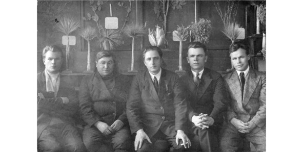 Н. Белкин – сидит третий слева, Максимов – второй. ОмСХИ, 1930-е гг.