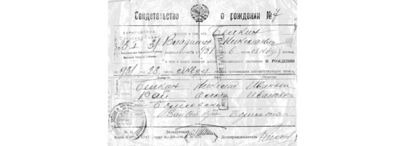 Свидетельство о рождении Владлена Белкина. 1931 г.