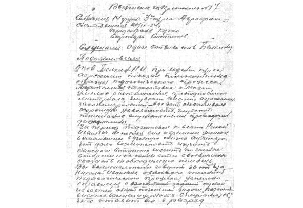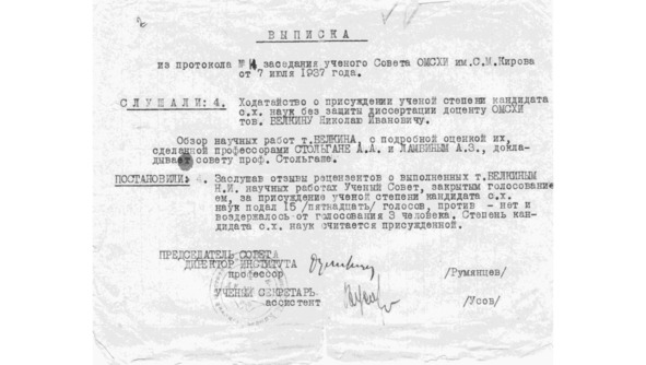 из протокола №11 заседания ученого совета ОМСХИ им. С. М. Кирова от 7 июля 1937 года.