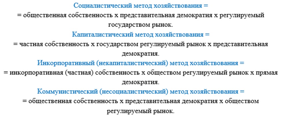 Каждый метод хозяйствования может дать только те результаты общественного развития, которые могут быть получены механизмами его реализации.