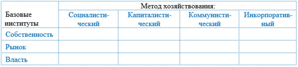 Методы хозяйствования различаются, образующими их базовыми институтами институциональных матриц.