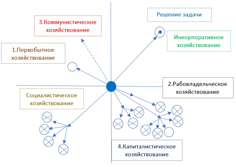 Существование разных экономических систем и различия в их функционировании до сих пор не получили удовлетворительного объяснения со стороны ученых, занимающихся разработкой институциональных основ общественного развития. А причина проста – существующим теориям не под силу эта задача. Последние 50 лет западные ученые и последние 30 лет российские ученые ориентировались на поиск решений вопросов экономического роста, ориентируясь на процесс глобализации капиталистической (завуалированно называя «рыночная») модели экономического развития и хозяйствования. Они исходят из аксиомы о том, что права частной собственности являются совершенными, а рынок – уникальный механизм регулирования общественных отношений и др.