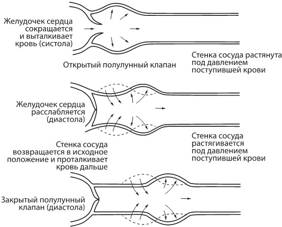 Итак, сердечная систола – это старт кровотока. И, как в спорте, кто лучше стартовал, тот, скорее всего, первым и добежит до финиша. У спортивных людей сердце бьется редко, но сильно и эффективно (брадикардия спортсменов), но это не аритмия – это редкий и мощный пульс, экономящий энергетику сердечно-сосудистой системы. Почему же у гипертоника на финише объема крови не хватает и для достаточного обеспечения систолы его сердце (миокард) должно биться чаще, если общий объем крови (5,2 л) в любом случае неизменен? Где «застревает» кровь? Отвечая на этот вопрос, мы подбираемся к определению истинной причины появления эссенциальной гипертонии. И чтобы полноценно ответить на этот вопрос, надо разобраться с другими участниками гемодинамики.