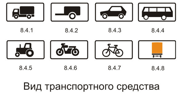 Табличка 8.4.1 распространяет действие знака на грузовые автомобили, в том числе с прицепом, с разрешенной максимальной массой более 3,5 т, табличка 8.4.3 – на легковые автомобили, а также грузовые автомобили с разрешенной максимальной массой до 3,5 т, табличка 8.4.8 – на транспортные средства, перевозящие «Опасные грузы».