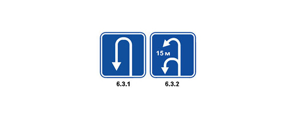 Не путайте знаки 6.3.1 «Место для разворота» и 6.3.2 «Зона для разворота», первый информирует о месте для разворота, а второй о протяженности зоны этого поворота, но оба знака запрещают поворот налево, можно проехать и прямо, но это другой разговор.