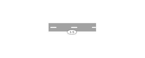 1.5 прерывистая белого цвета, длина штриха в 3 раза короче расстояния между ними – разделяет транспортные потоки противоположных направлений на дорогах с 2-мя или 3-мя полосами, обозначает границы полос движения при наличии двух или более полос, предназначенных для движения в одном направлении. Такая линия не запрещает никакие маневры, ее разрешается пересекать с любой стороны.