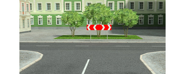 Знак 1.34.3 «Направление поворота». Направление движения на Т-образном перекрестке или разветвлении дорог.