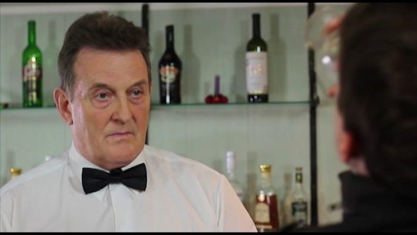 Харитонов приходит в кафе. Вчерашние парни, увидев Харитонова, быстро ретируются из кафе. Бармен, глядя на них улыбается. Харитонова встречает, как старого знакомого. Выставляет на барную стойку бокал и наливает коньяк.