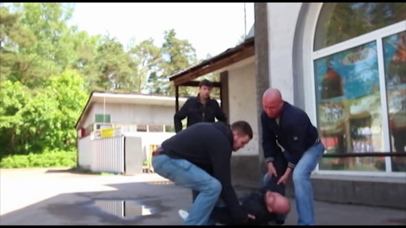 К этому времени первый и второй парни начинают двигаться, но снова нападать на Харитонова не решаются. Харитонов делает шаг навстречу.