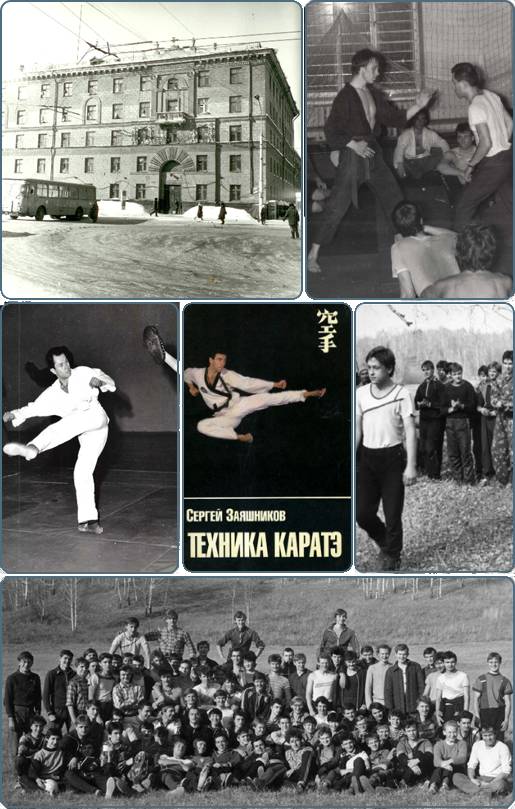 В 1990-м я пришел в СК «Ермак»… Тогда тренировались в спортзале школы (см.видео) вместе с группой ОФП (карате было запрещено в СССР, поэтому энтузиасты часто маскировали занятия под видо «ОФП» и т.д – Прим. редакт.). В зале человек сто (см.видео).