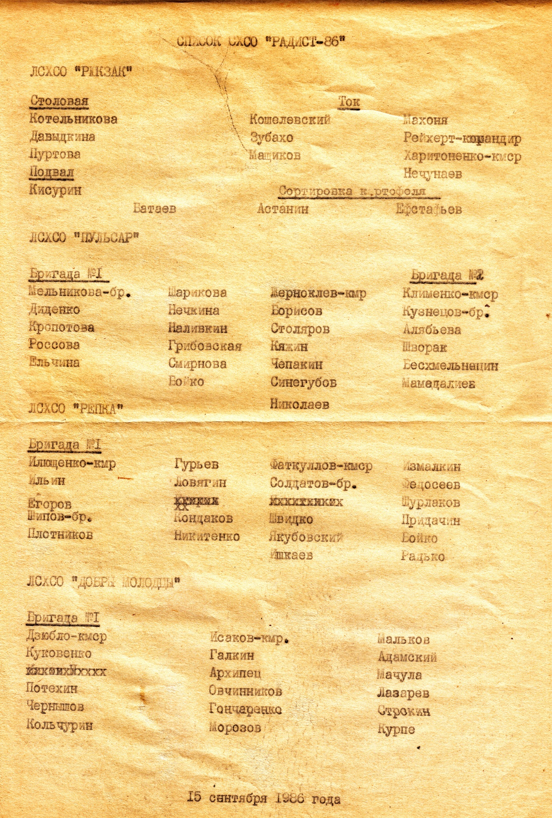 Полное название отряда СХСО – сельскохозяйственный студенческий отряд. СХСО «Радист-86».