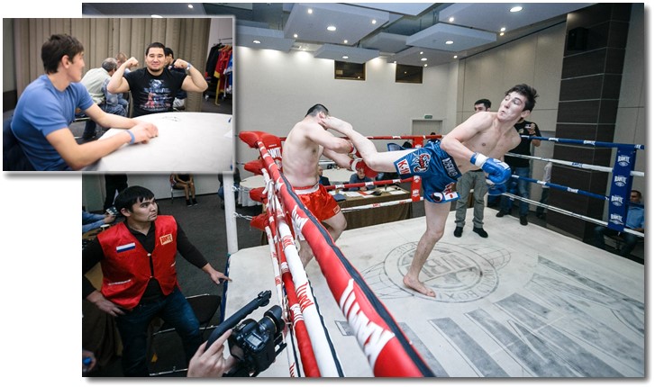 2015-10-23. Москва-Сити. Новотель. «RAMTL FIGHT-V». Расул Ваисов (Москва) vs Арслан «Лев» Яллыев (Москва). Слева на фото сидят – А. Яллыев, Т. Джемалиев. Подробнее – прил. стр. 434