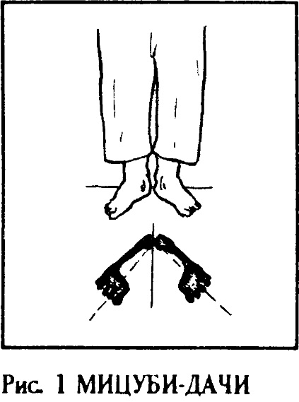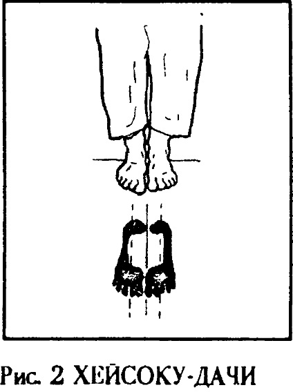 Шизен‑тан (естественное положение) включает в себя: мицуби‑дачи – непринужденная стойка готовности, носки врозь (рис. 1); хейсоку‑дачи – свободная стойка готовности (рис. 2);