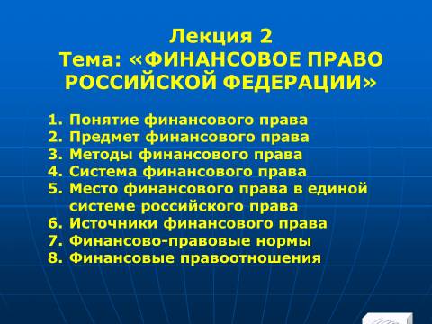 Тема №2. ФИНАНСОВОЕ ПРАВО РОССИЙСКОЙ ФЕДЕРАЦИИ