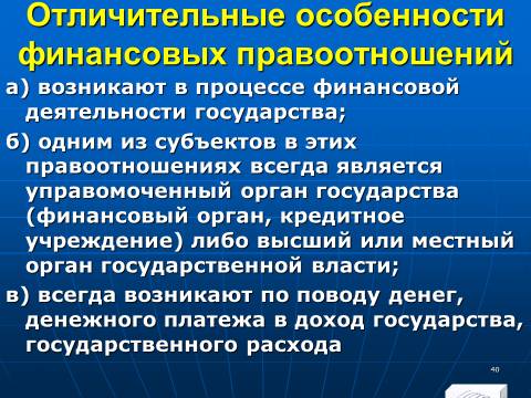 Вопрос 3. К отличительным особенностям финансовых правоотношений не относится: