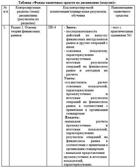 Фонд оценочных средств дисциплины «Финансовые рынки»