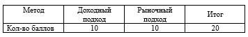 За оценку нематериальных активов выбранного предприятия одним из методов студент получает соответствующее количество баллов: