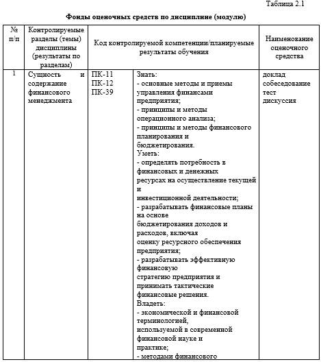 Фонд оценочных средств дисциплины «Финансовый менеджмент. Экономическая безопасность»