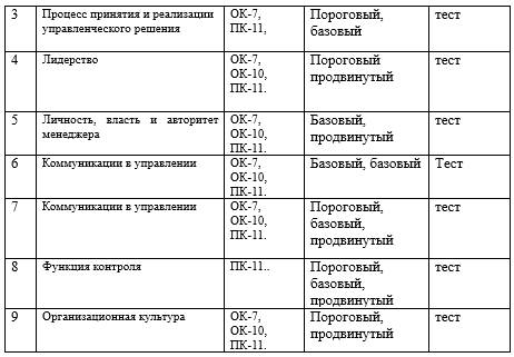 2. Базовый уровень: Основные этапы развития менеджмента как науки и профессии; ставить цели и формулировать задачи, связанные с реализацией профессиональных функций; методами реализации основных управленческих функций (принятие решений, организация, мотивирование и контроль); современными технологиями эффективного влияния на индивидуальное и групповое поведение в организации.