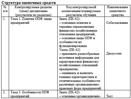 1. Пороговый уровень: предполагает формирование компетенций ПК-42 на начальном уровне, основные понятия и термины определяющие финансово-хозяйственные отношения предприятий; основные организационно-правовые формы предприятий, их главные характеристики и отличительные особенности; применять разнообразные источники информации для характеристики финансово-хозяйственных отношений предприятия; оценивать и выявлять главные характеристики и отличительные особенности различных организационно-правовых форм предприятий.