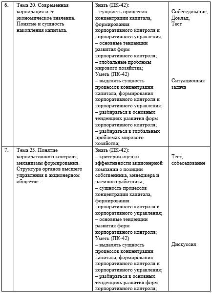 3. Продвинутый уровень: предполагает формирование компетенций ПК-42 на высоком уровне, готовность к самостоятельной профессиональной деятельности. Формируются системные знания о направлениях внутренней внешней экономической политики критерии оценки эффективности акционерной компании с позиции собственника, менеджера и наемного работника; сущность процессов концентрации капитала, формирования корпоративного контроля и корпоративного управления; основные тенденции развития форм корпоративного контроля; глобальные проблемы мирового хозяйства; выделять критерий оценки эффективности акционерной компании с позиции собственника, менеджера и наемного работника; выделять сущность процессов концентрации капитала, формирования корпоративного контроля и корпоративного управления; разбираться в основных тенденциях развития форм корпоративного контроля; разбираться в глобальных проблемах мирового хозяйства.