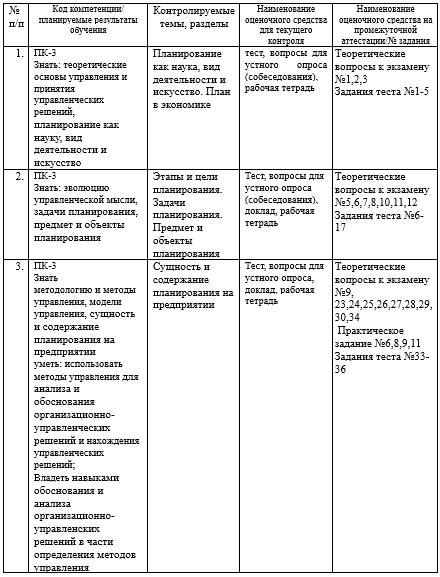 Фонд оценочных средств дисциплины «Планирование на предприятии (ЭиУ)»