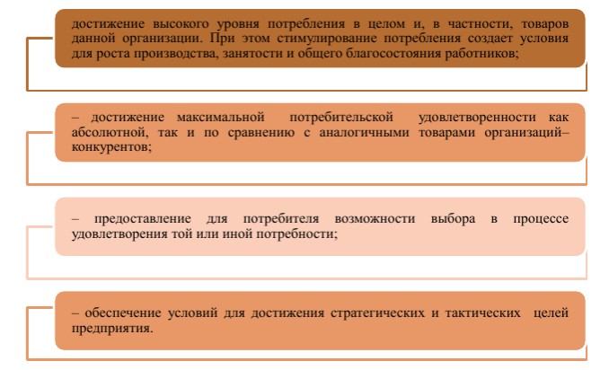 При этом основная цель маркетинговой деятельности заключается в создании потребительской ценности товаров (работ или услуг) путем предложения высококачественных решений, которые способствуют экономии усилий и времени, затрачиваемых покупателем на поиск и совершение сделки, а также в целом предоставить обществу более высокий стандарт жизни.