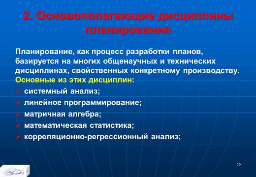 Тема №2 «МЕТОДОЛОГИЧЕСКАЯ ОСНОВА ПЛАНИРОВАНИЯ»
