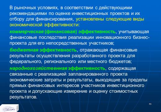 Вопрос 6. При планировании коммерческой эффективности на уровне предприятия, фирмы метод дисконтирования предусматривает: