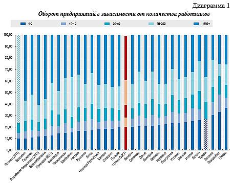 В Российской Федерации традиционно малый бизнес не занимает большое место в экономике страны. Наибольшее место в экономике страны занимают крупные предприятия с количеством человек более 250 человек. Россия занимает первое место по количеству крупных предприятий. Таким предприятиям предоставляются налоговые льготы, например, нефтегазовому сектору, разрабатываются специализированные программы поддержки, такие как введение утилизационного сбора для поддержки автопроизводителей. Россия занимает одну из низких позиций в части развития микропредприятий численностью от 1 до 9 человек.