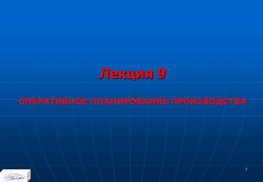 Тема №9 «ОПЕРАТИВНОЕ ПЛАНИРОВАНИЕ ПРОИЗВОДСТВА»