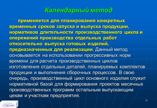 Вопрос 9. В оперативном планировании производства, в зависимости от разрабатываемых показателей, не применяется метод: