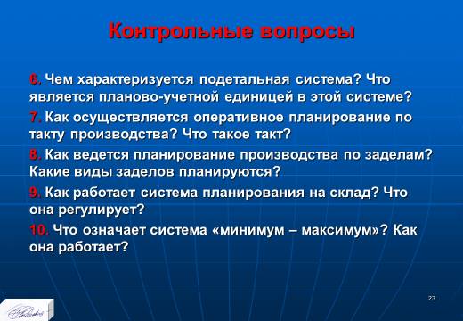 Сергей Каледин Оперативное планирование производства. Слайды, тесты и ответы