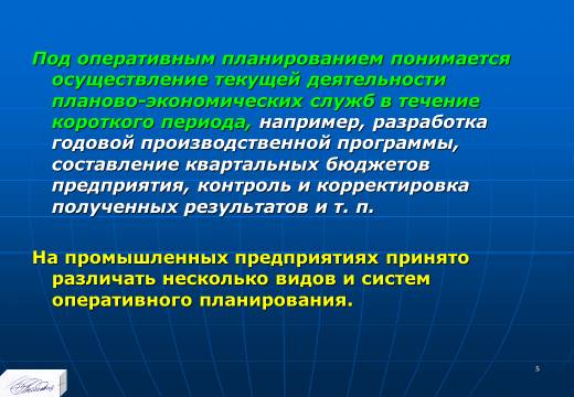 Вопрос 5. Содержанием какого планирования является разработка оперативных планов и составление текущих графиков работы производственных участков?