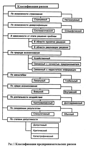 В предпринимательской деятельности можно выделить риск в сфере принятия решений и в сфере их реализации. Существенным отличием этих рисков друг от друга является то, что на стадии принятия решения, когда оно только прорабатывается, можно внести изменения и исправить положение, тогда как на стадии реализации предпринимательского проекта гораздо труднее что-либо существенно изменить.